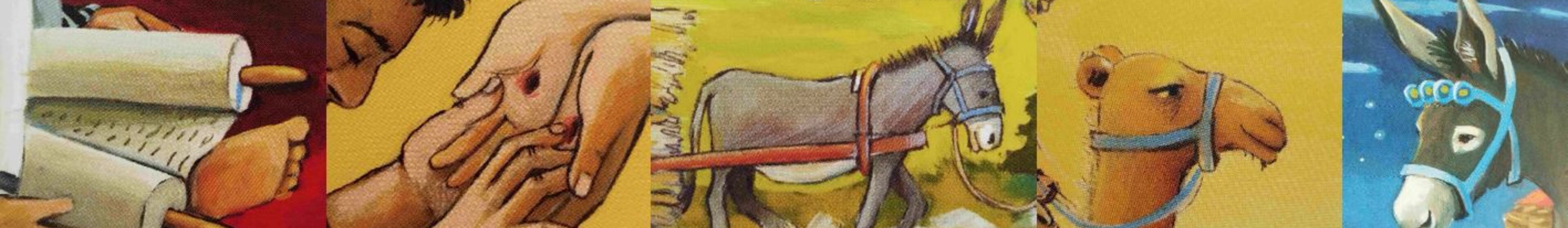 Das Kamel bringt Abraham und seine Frau Sarah nach Israel.